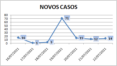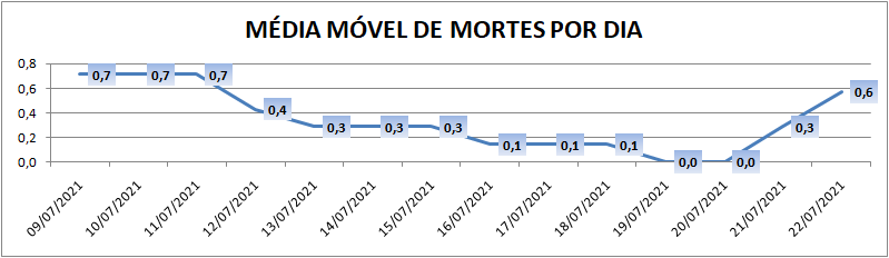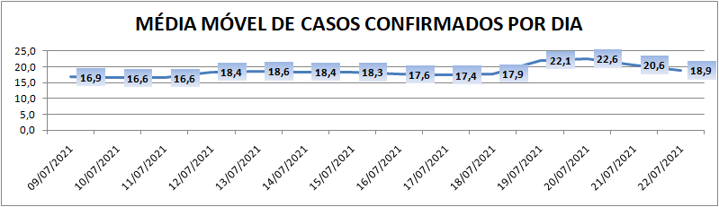 A média móvel de novos casos na região é de 18,9 por dia. Na comparação com o dado de sete dias atrás, a média móvel apresenta crescimento de 7%. Já com relação ao índice de 14 dias atrás a média móvel apresenta crescimento de 12%.