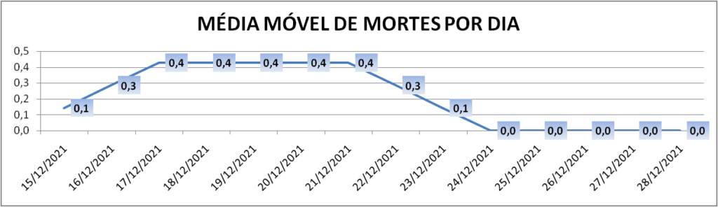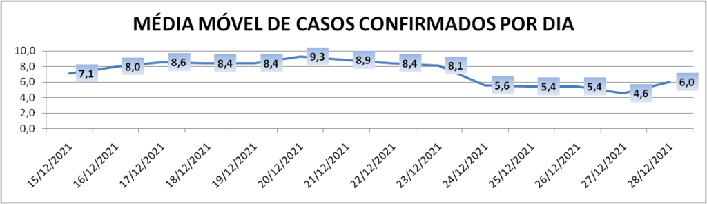 A média móvel de novos casos na região é de 6 por dia. Com relação ao índice de 14 dias atrás a média móvel apresenta queda de 16% – o que indica tendência de queda na pandemia*.