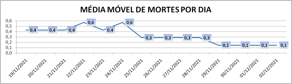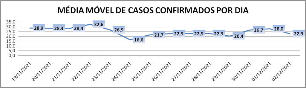 A média móvel de novos casos na região é de 22,9 por dia. Com relação ao índice de 14 dias atrás a média móvel apresenta queda de 21% – o que indica tendência de queda na pandemia*.