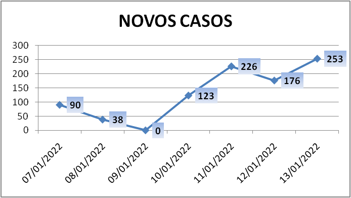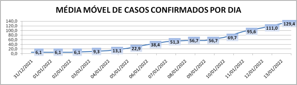 A média móvel de novos casos na região é de 129,4 por dia. Com relação ao índice de 14 dias atrás a média móvel apresenta crescimento de 2007%*.