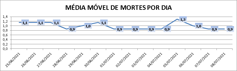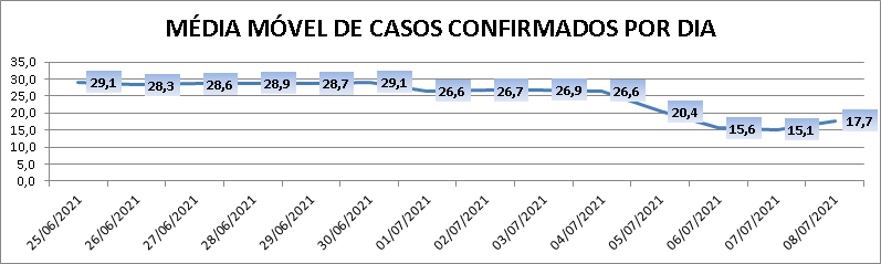 A média móvel de novos casos na região é de 17,7 por dia. Na comparação com o dado de sete dias atrás, a média móvel apresenta queda de 34%. Já com relação ao índice de 14 dias atrás a média móvel apresenta queda de 39%.
