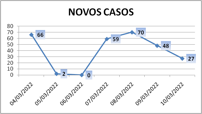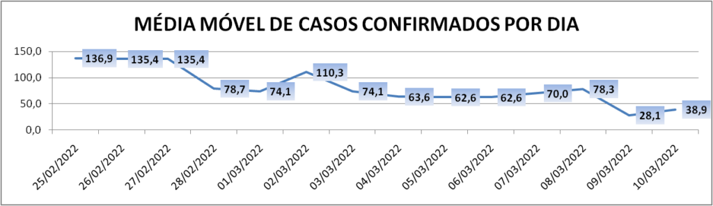 A média móvel de novos casos na região é de 38,9 por dia. Com relação ao índice de 14 dias atrás a média móvel apresenta queda de 72%*.