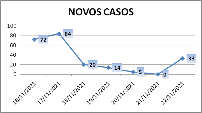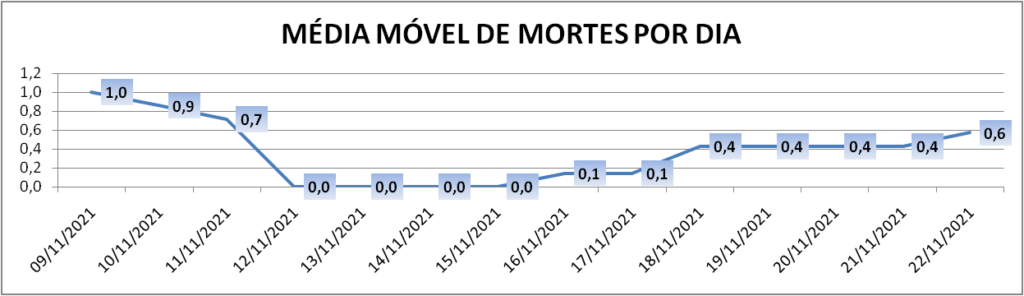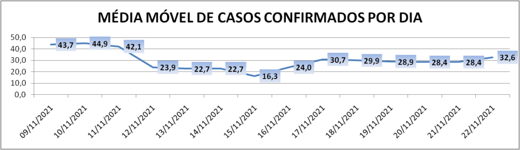 A média móvel de novos casos na região é de 32,6 por dia. Na comparação com o dado de sete dias atrás, a média móvel está em crescimento de 36%. Já com relação ao índice de 14 dias atrás a média móvel apresenta queda de 25%.