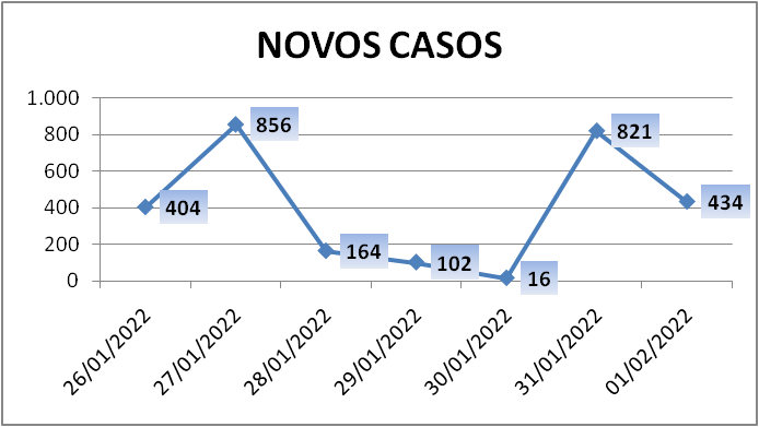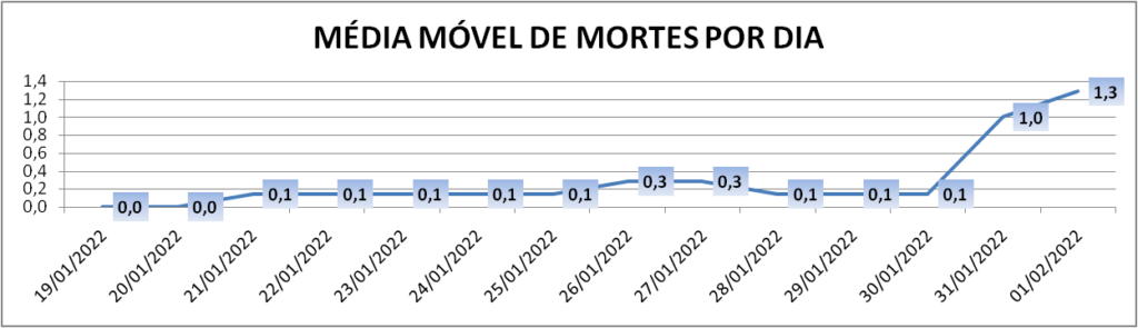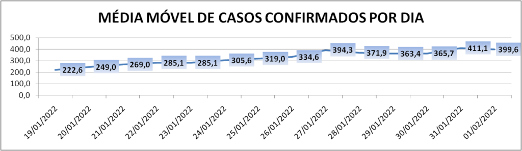 A média móvel de novos casos na região é de 399,6 por dia. Com relação ao índice de 14 dias atrás a média móvel apresenta crescimento de 80%*.