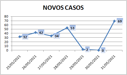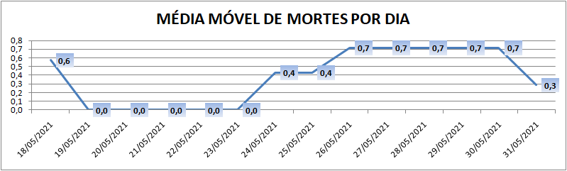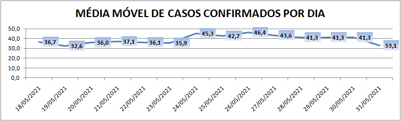A média móvel de novos casos na região é de 33,1 por dia. Na comparação com o dado de sete dias atrás, a média móvel apresenta queda de 22%. Já com relação ao índice de 14 dias atrás a média móvel apresenta diminuição de 10%.