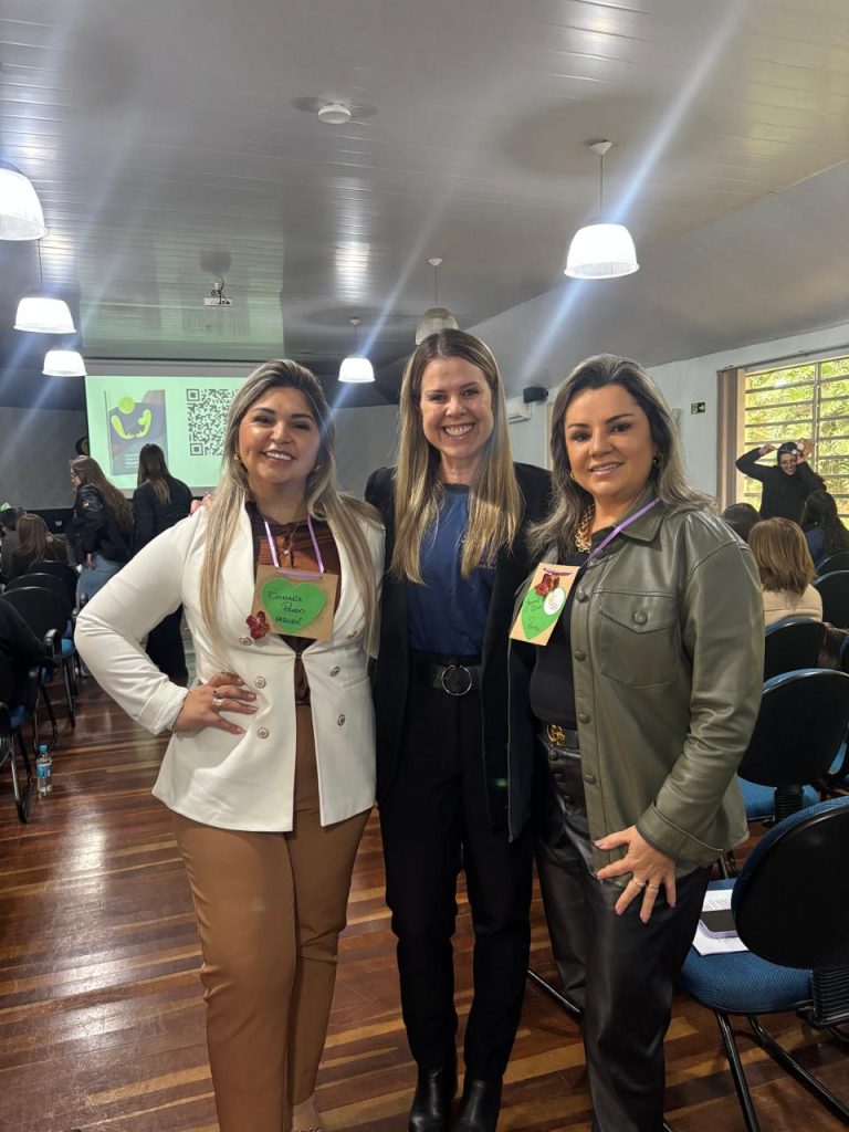 Durante o encontro, representantes de Parobé também estiveram ao lado de Jaqueline Hansen, coordenadora do Grupo de Trabalho Intersetorial Criança na Cidade de Estância Velha, fortalecendo a rede regional de articulação em prol da infância.