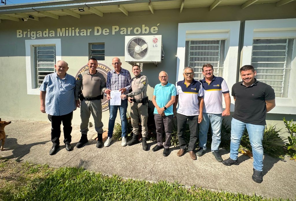 O documento foi entregue ao tenente-coronel Pedro da Cunha e ao Capitão Rodolfo Petrus, em um encontro que também contou com a presença de representantes de entidades locais, como Walter Boeira, Gilberto Wichmann e Volnei, do Rotary Club de Parobé; Geraldo Both, presidente do Lions Club de Parobé; e o empresário André Wichmann.