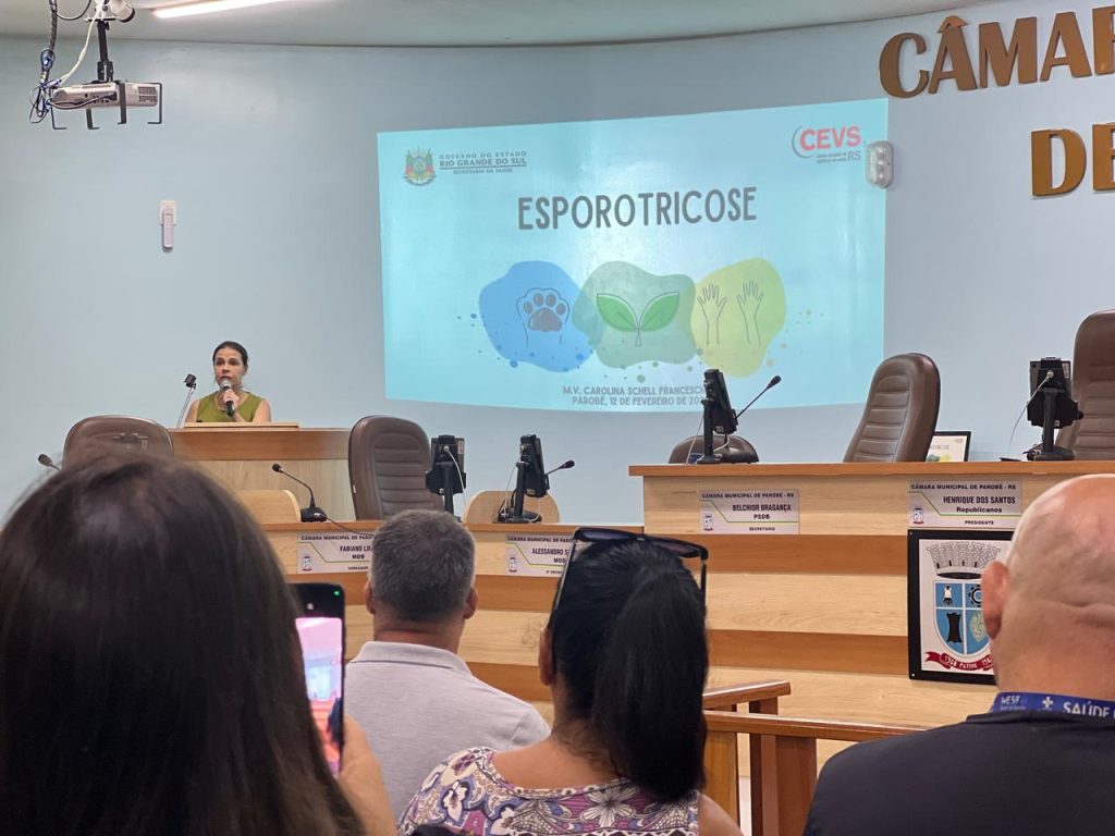 Na manhã desta quarta-feira (12), Parobé recebeu uma capacitação regional voltada às Secretarias de Saúde sobre esporotricose, doença que pode afetar tanto animais quanto humanos. O evento ocorreu na Câmara de Vereadores e reuniu cerca de 70 profissionais, incluindo equipes das Unidades Básicas de Saúde (UBSs), Vigilância Epidemiológica e Ambiental, Agentes de Endemias e Agentes de Saúde de Parobé, Nova Hartz, Igrejinha, Taquara, Rolante e São Francisco de Paula.
