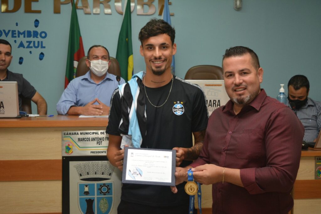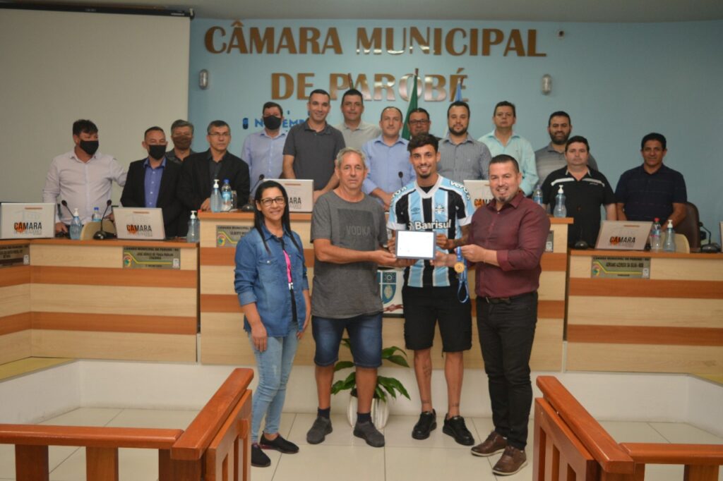 O autor da proposta foi o vereador Marcelo Pereira (PDT). Na ocasião, o parlamentar destacou que realizar a homenagem é motivo de orgulho. “Eu que fiz base no futebol por dois anos e como cidadão parobeense sempre tive sonho de ver sair da nossa cidade um atleta que se destacasse na dupla grenal. Com certeza vou te trazer outra homenagem aqui quando estiver no profissional”, mencionou.