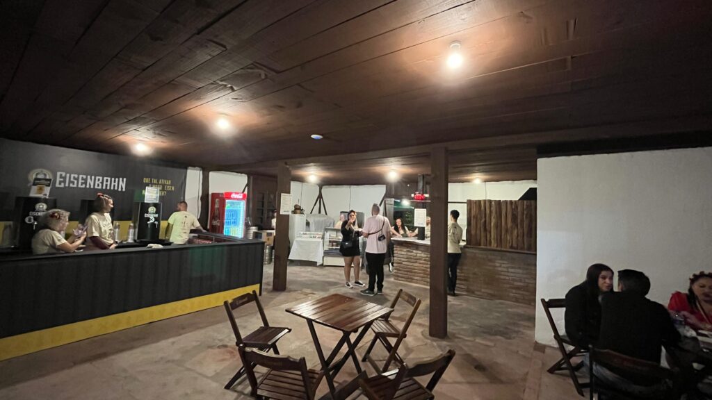 Localizado próximo ao Parque de Diversões, o BierGarten reúne diversos quiosques e trailers de lanches, com mesas e cadeiras espalhadas em um amplo espaço aberto e em meio a natureza.