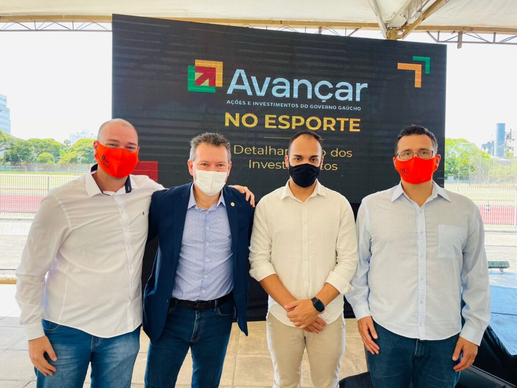 Os secretários de Orçamento e Finanças, Jefferson Müller, e de Planejamento, Habitação, Segurança, Mobilidade e Trânsito, Luciano Campana, o deputado estadual Dalciso Oliveira e o vereador Dodô Mello acompanharam a solenidade presencialmente, representando Taquara durante o anúncio feito pelo governador Eduardo Leite e o secretário de Esporte e Lazer do RS, Danrlei de Deus.