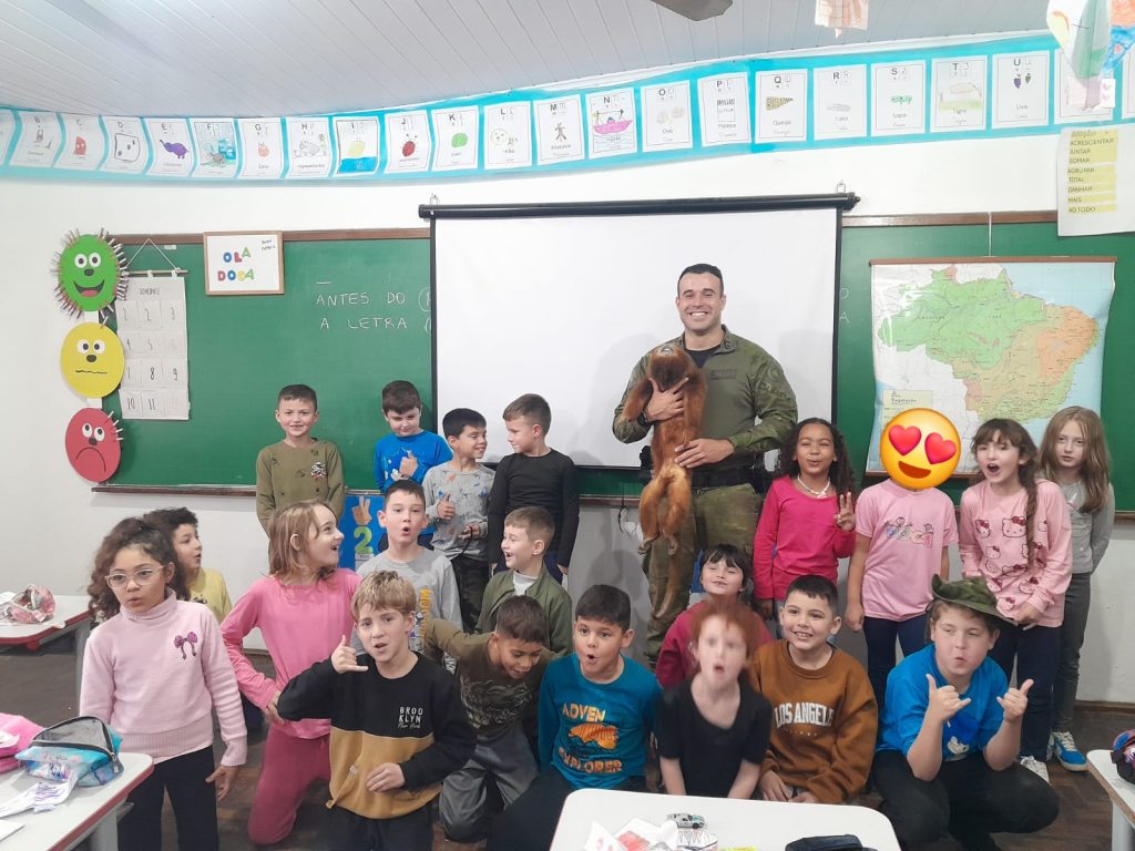 A ação integra uma série de atividades desenvolvidas em escolas da região pela Polícia Ambiental, com o objetivo de aproximar os estudantes das questões ambientais e fortalecer a educação ecológica desde a infância.