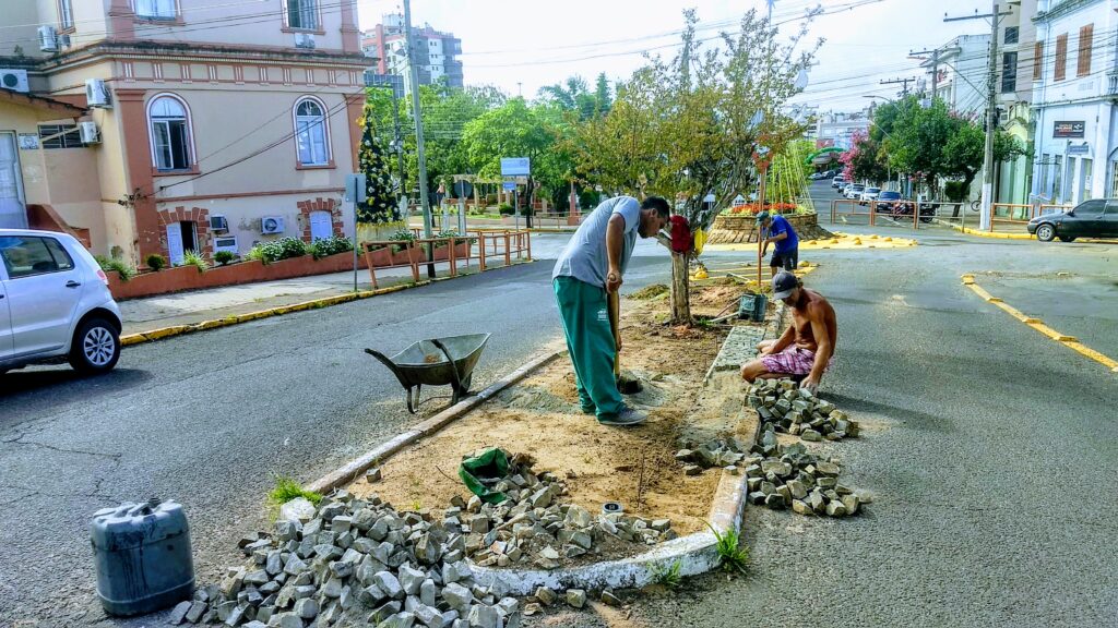 Localizados entre as ruas Júlio de Castilhos e Dr. Edmundo Saft, nas proximidades da Casa Vidal e da sede da prefeitura, os canteiros históricos de Taquara começam a ganhar nova forma, com a recolocação das pedras portuguesas. Retiradas do local para lavagem, as pedras estão voltando aos 13 canteiros, instalados na década de 1920.