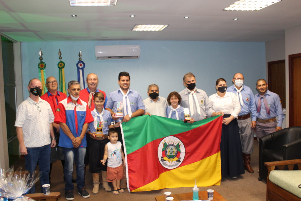 Vencedores do 19º Rodeio Crioulo Nacional dos Campeões, ocorrido no mês passado, em Criciúma, Santa Catarina, dois peões do CTG Querência do Mundo Novo, de Três Coroas, foram recebidos pelo prefeito Alcindo de Azevedo. O encontro contou ainda com a participação de uma comitiva do CTG e integrantes da 22ª Região Tradicionalista (RT).