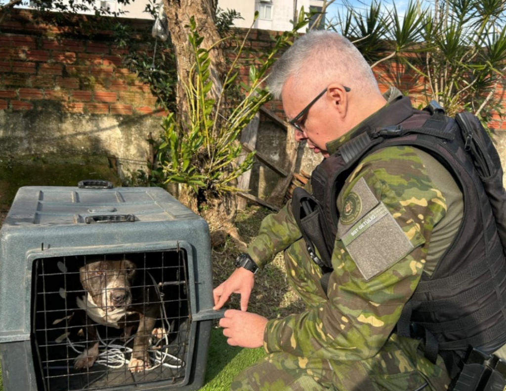 Polícia Ambiental de Taquara entrega cachorro a morador de Parobé para tratamento e adoção
