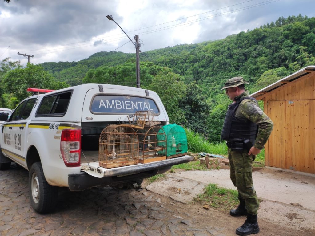 Policiais Militares do 2º Grupo de Polícia Ambiental (2GPA) de Taquara, em uma ação conjunta com a Secretaria de Meio Ambiente de Três Coroas, apreenderam na última terça-feira (05), três pássaros da espécie Azulão e material de caça em uma residência no interior do município. A operação, realizada após denúncia de crimes ambientais, ainda resultou na apreensão de carne de Quati congelada, indicando prática de caça ilegal.