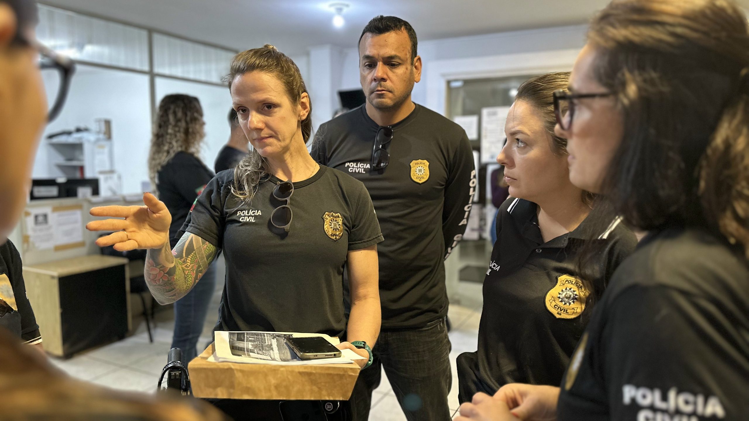 Agentes planejando o cumprimento dos mandados – Créditos: Guilherme Kaiser