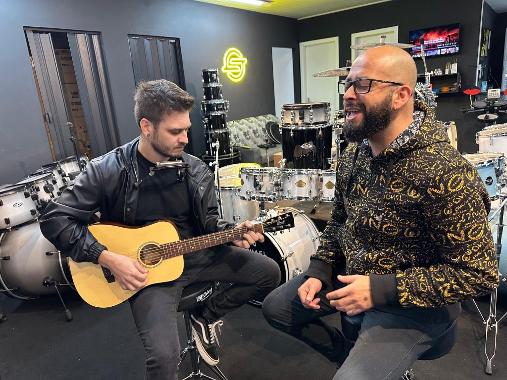 “Eu gravo a voz e o violão, estou aprendendo a mexer nos equipamentos, e o Junior tem um talento incrível, entendendo até melhor do que eu como produzir e ajudar nas gravações”.