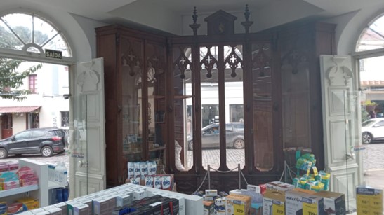 Nas edificações são preservadas a arquitetura interna, externa e o local transformado em farmácia.