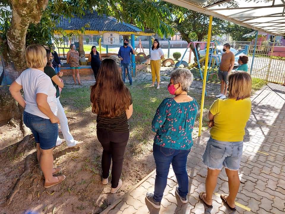 Durante as visitas nas escolas Klemens Bley, Santo Antônio, Raios de Luz e Gente Miúda, o prefeito e a secretária agradeceram o empenho de todos os profissionais da educação neste momento difícil, sem aulas presenciais, que exige uma maneira totalmente diferente de trabalhar.