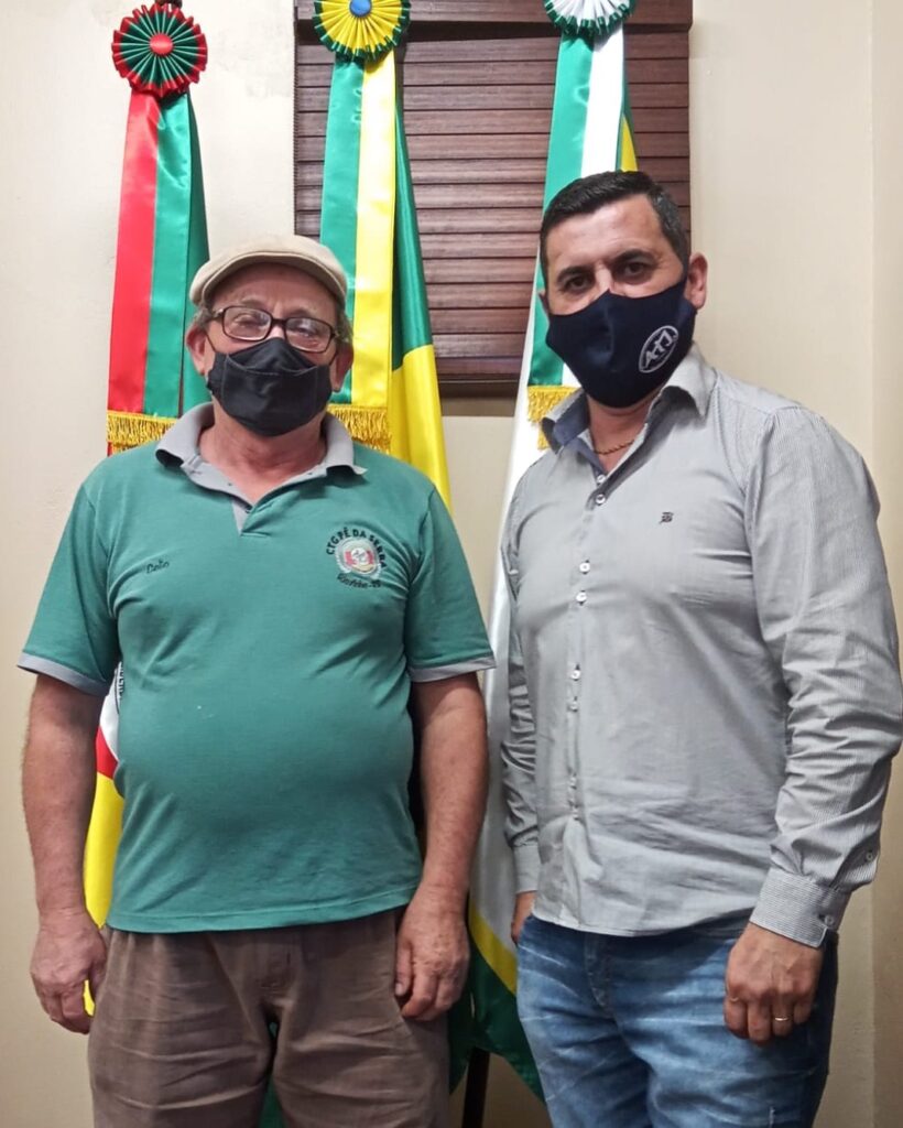 O patrão do CTG Pé da Serra de Riozinho, Célio Pretto, realizou, na tarde desta terça-feira (14), a entrega de um convite oficial ao prefeito em exercício Joir, para a Semana Farroupilha. Na oportunidade o patrão Célio passou a programação ao prefeito e estendeu o convite a todos os servidores municipais.