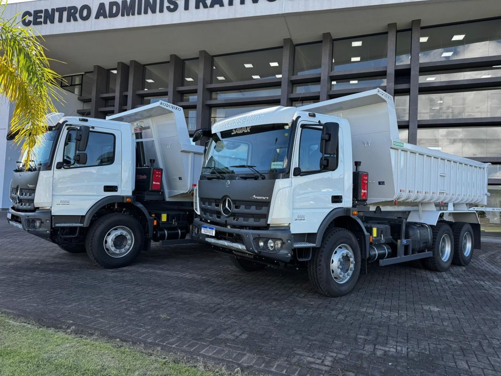 Os veículos são do modelo Mercedes-Benz Atego 3133/48 6×4, ano/modelo 2025/2026, equipados com motor a diesel e preparados para operações que exigem robustez e eficiência. Com capacidade para serviços pesados, os caminhões devem contribuir para a melhoria dos serviços públicos prestados à população.