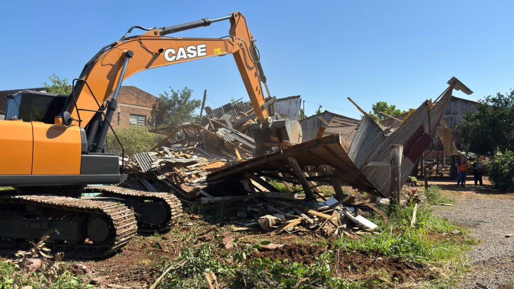 A Prefeitura de Igrejinha realizou, na manhã de sábado (23), a demolição de cerca de 15 residências localizadas na Rua Rui Barbosa, no bairro Figueiras. Segundo a administração, os imóveis estavam em área severamente atingida pela enchente registrada em 2024.