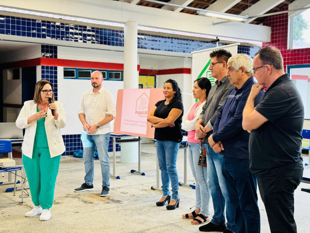 Na tarde de quarta-feira (15), durante o feriado de Proclamação da República, servidores da Secretaria de Planejamento, Habitação, Segurança, Mobilidade e Trânsito de Taquara estiveram na Escola Municipal de Educação Infantil (EMEI) Vovó Arlete, reunindo-se com 49 famílias do Loteamento Nunes, dando início ao processo de regularização de seus lotes. Conforme a prefeitura de Taquara, os moradores deste loteamento, localizado no Bairro Mundo Novo, aguardavam pela regularização desde 1990.