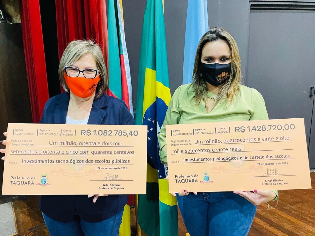 Um investimento que visa resgatar a qualidade do ensino na rede municipal. Assim foi definido pela prefeita Sirlei Silveira o repasse de R$ 2.511.505,40 da Secretaria Municipal de Educação, Cultura e Esportes para as escolas ainda neste ano, anunciado na tarde desta quinta-feira (23), no Centro Educacional Índio Brasileiro Cezar. Os recursos são provenientes do Fundo de Manutenção e Desenvolvimento da Educação Básica e de Valorização dos Profissionais da Educação (Fundeb), do Fundo Nacional de Desenvolvimento da Educação (MDE) e do Salário Educação.