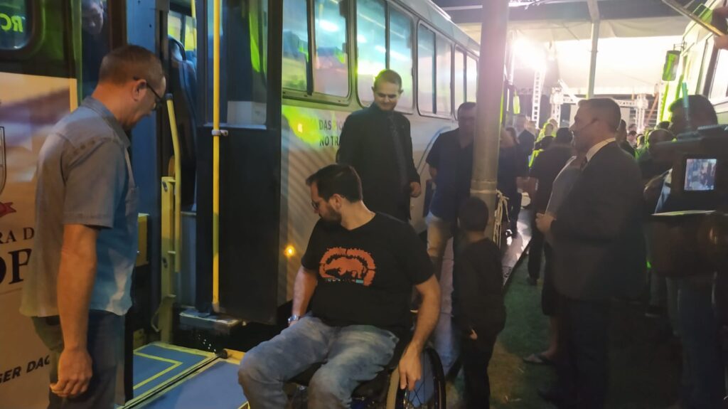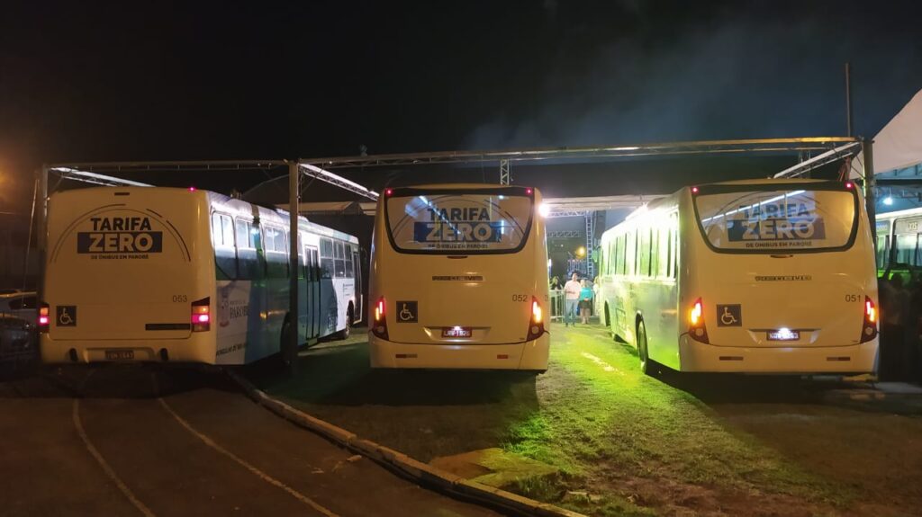 Após a apresentação do programa Parobé pra Frente III, Diego Picucha convidou todos os presentes ao evento para se dirigirem à lateral do palco, momento em que as lonas foram retiradas e foram apresentados à população os ônibus que realizarão o Transporte Coletivo Gratuito.