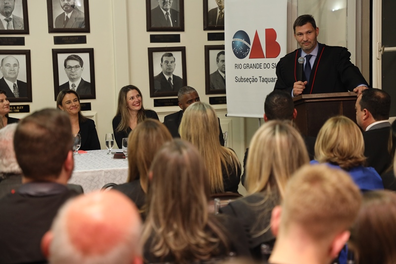 “Mais do que nunca, devemos ter o espirito de união e força, na luta não apenas do interesse de nossos clientes, mas especialmente batalhar pelo respeito às prerrogativas da nossa classe. Sei que esta tarefa será árdua, mas conto com a ajuda de toda a minha diretoria, sabendo que posso contar com o apoio de todos vocês”, afirmou presidente da OAB subseção de Taquara.