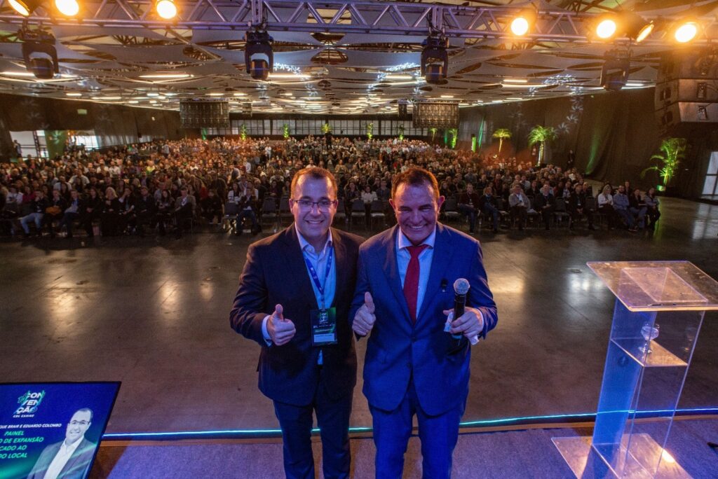Em Caxias do Sul, na última quinta-feira (10), o presidente da Rede de Farmácias São João dividiu o palco com o presidente da CDL e CEO das Lojas Colombo, Eduardo Colombo. Para um público de mais de 2,5 mil pessoas, durante a 1ª Convenção da Câmara de Dirigentes Lojistas (CDL), no Centro de Eventos dos Pavilhões da Festa da Uva, falaram sobre modelo de expansão aplicado ao mercado local e o futuro do empreendedorismo.