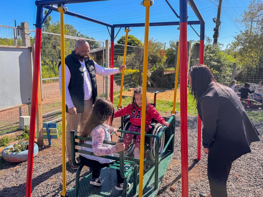 Durante a visita, os representantes foram recepcionados pela equipe diretiva da escola e pela aluna Lavínia, que utiliza cadeira de rodas e foi uma das primeiras a interagir com os novos brinquedos inclusivos. O equipamento marca um passo importante para garantir a acessibilidade de crianças com deficiência nas instituições de ensino do município.