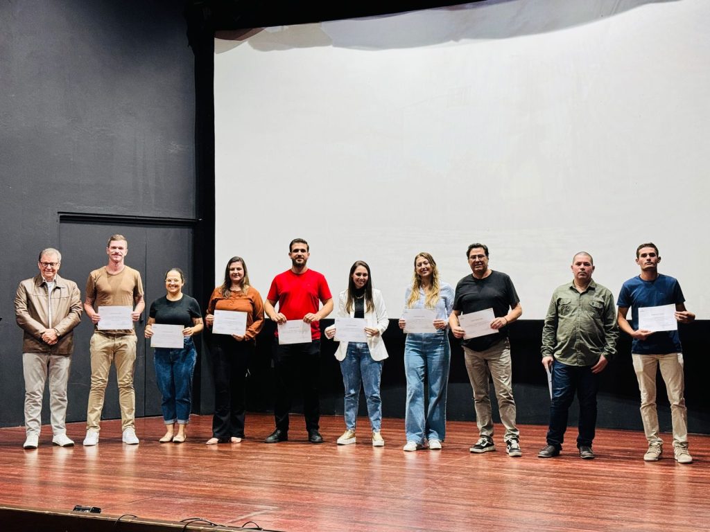 Antes da apresentação dos 10 projetos exibidos na mostra de audiovisual, a diretoria de Cultura de Taquara fez a entrega do certificado para cada um dos 10 vencedores do concurso fotográfico 2025. Além do certificado, cada um receberá um prêmio de R$ 500,00, que será depositado em suas contas bancárias nos próximos dias.