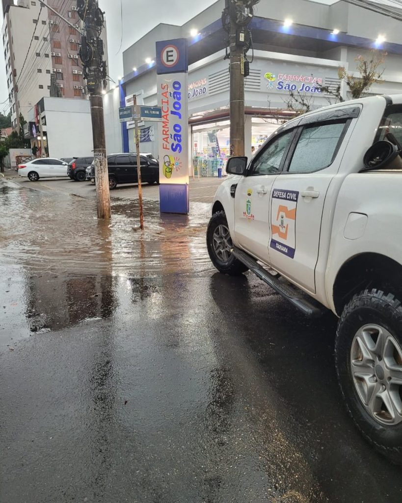 Também foram registrados alagamentos pontuais na região central de Taquara. Em um dos pontos mais afetados, no cruzamento da rua Marechal Floriano com a Bento Gonçalves, o trânsito precisou ser temporariamente interrompido para evitar que os veículos jogassem água para dentro de estabelecimentos comerciais.