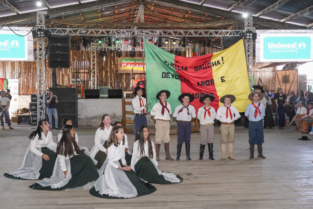 “Tradição e Família: Unindo Gerações na Semana Farroupilha”. Este é o contexto do Recanto Cultural 2023, que reuniu, na manhã e tarde deste sábado, 16, centenas de estudantes de escolas municipais de Taquara em apresentações que emocionaram o público presente na Sede Campestre do CTG O Fogão Gaúcho. O Recanto Cultural é organizado pela Secretaria Municipal de Educação, Cultura e Esporte – Smece, e integra a programação do 15º Festejos Farroupilhas do Paranhana.