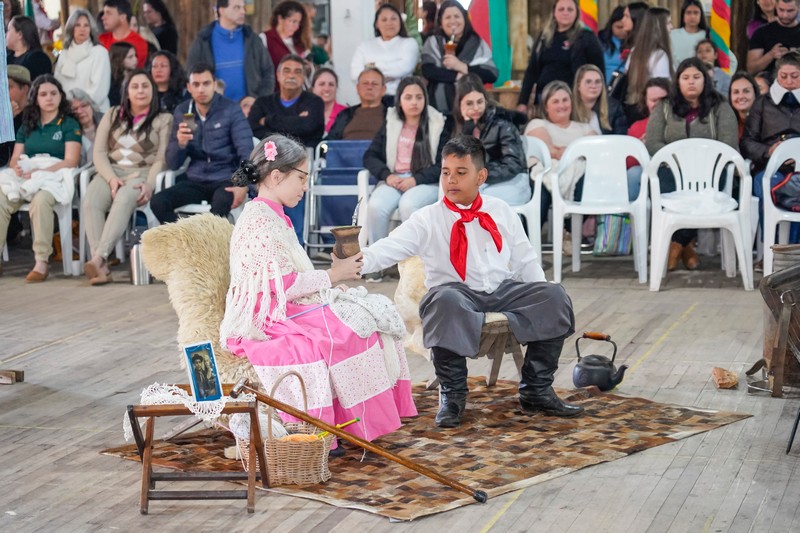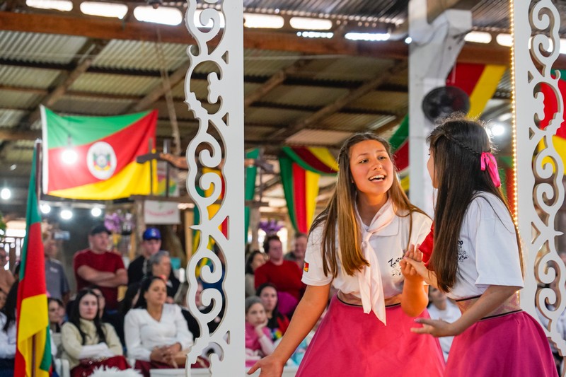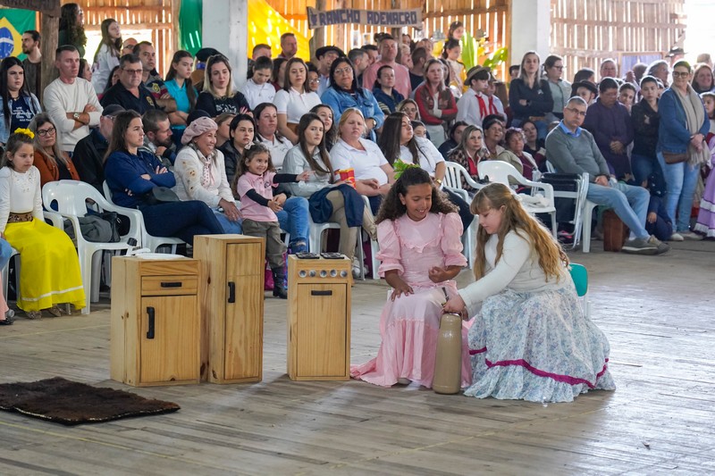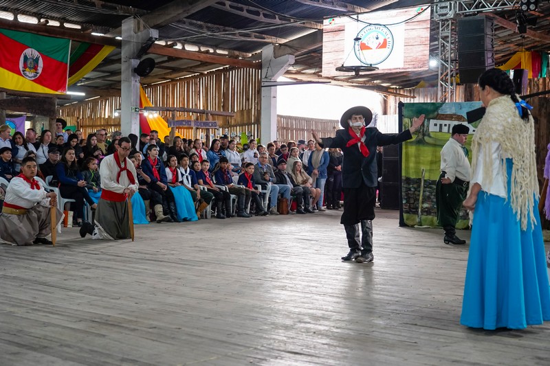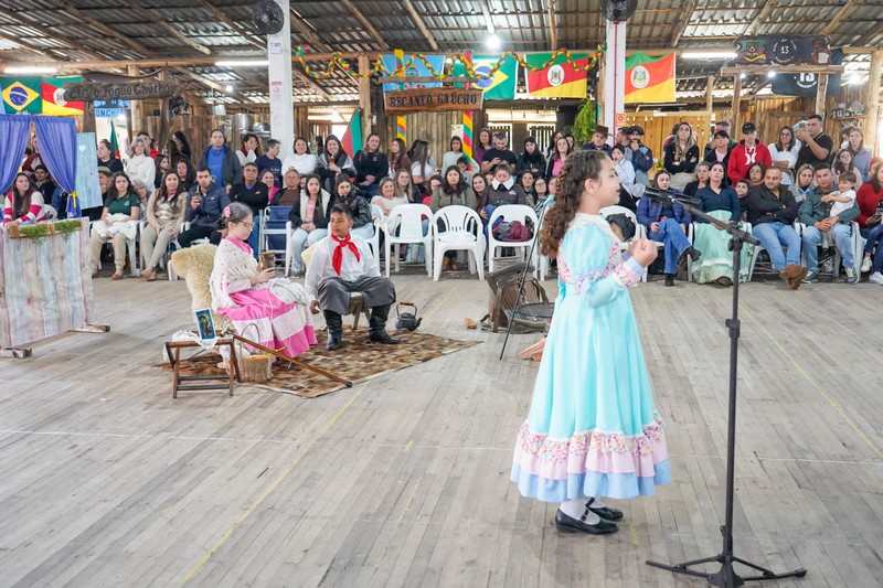 O Recanto Cultural: Escola e Comunidade foi um dos destaques do sábado (13) nos 17º Festejos Farroupilhas do Paranhana, reunindo famílias, estudantes e visitantes em um espaço lotado. Com o tema “Legado de Honra: A Tradição que Permanece”, o evento apresentou encenações teatrais e artísticas de alunos das redes municipal e estadual, valorizando a tradição gaúcha.