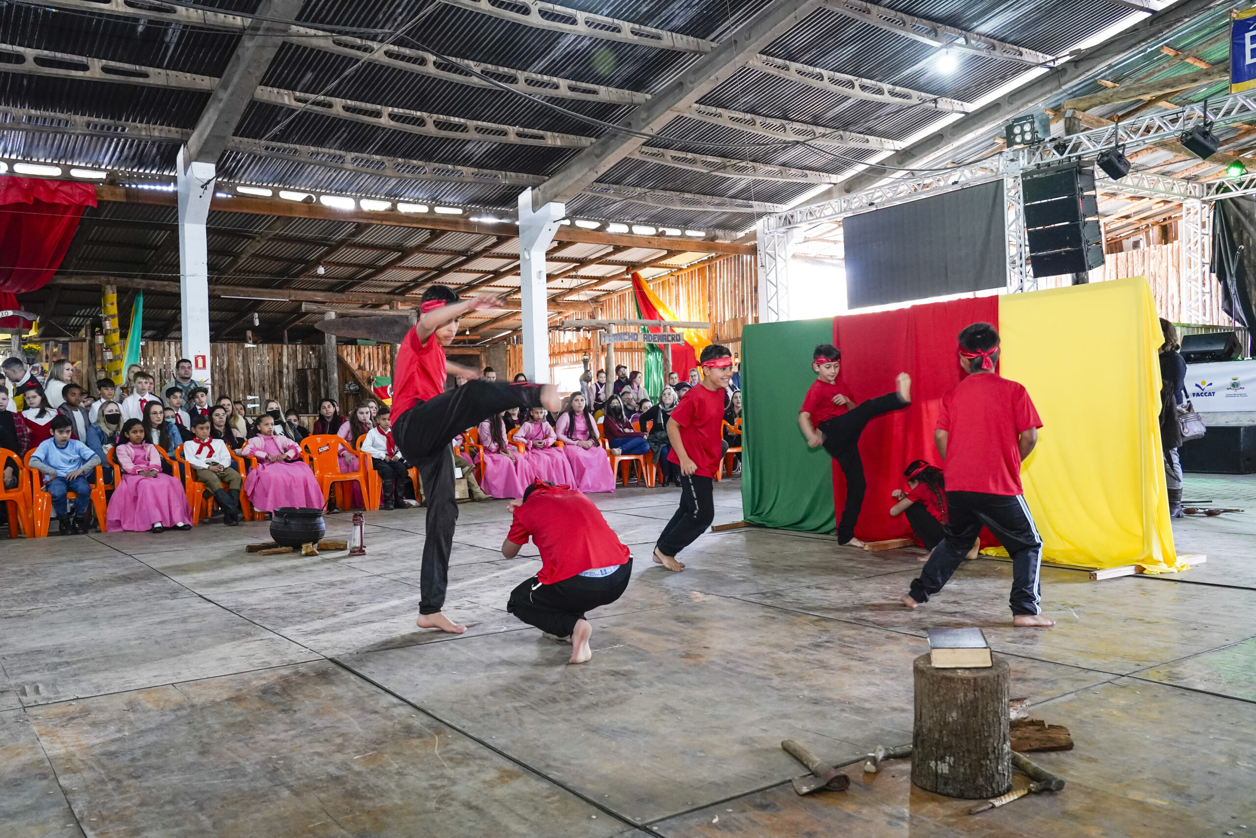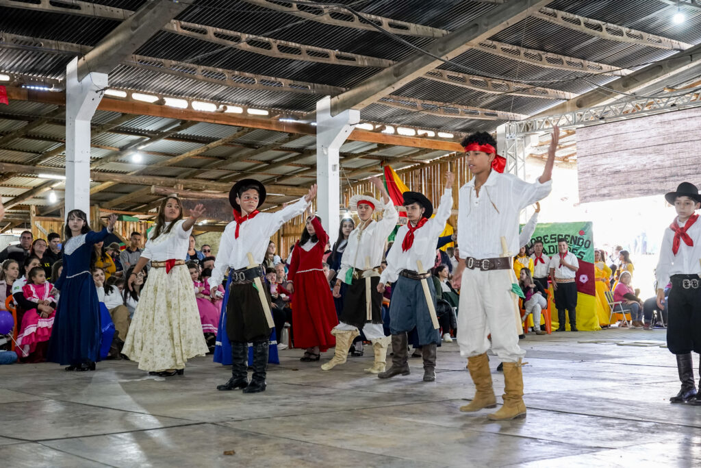 Considerado um dos momentos mais lindos e emocionantes dos Festejos Farroupilhas do Paranhana, o Recanto Cultural “Escola e Comunidade” é realizado pelos estudantes, com diversas apresentações com música, dança, declamações e encenações teatrais, propagando a cultura gaúcha. Durante a manhã e tarde do sábado (10), participaram 20 escolas, mobilizando aproximadamente 1,5 mil alunos, professores e diretores, além dos familiares e comunidade, que foram assistir as apresentação no Parque Anibaldo Renck, na sede campestre do CTG O Fogão Gaúcho, em Taquara.