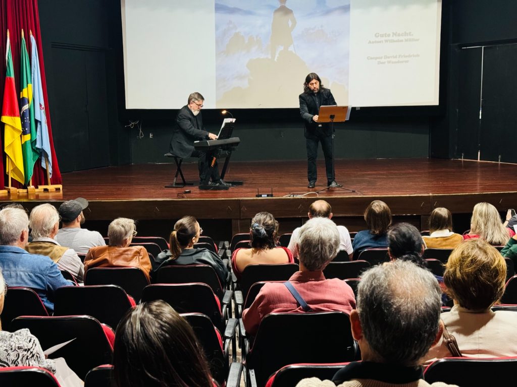 O Recital Musikkultur: música, poesia e arte alemã encantou o público na noite da última terça-feira (10), no Centro Educacional Índio Brasileiro Cezar, em Taquara. O evento, que integrou a programação especial do Natal Mágico de Taquara e celebrou o bicentenário da imigração alemã, reuniu música, artes visuais e poesia em uma homenagem à cultura germânica.
