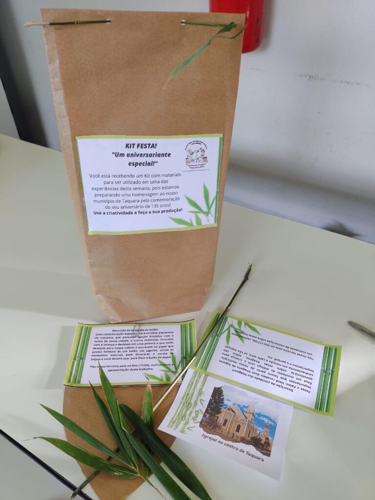 Cada escola organizou atividades online diferenciadas. Haverá painéis com a participação de convidados, entrevistas, brincadeiras e diversas outras manifestações em homenagem a Taquara. Algumas instituições de ensino, como as escolas municipais de Educação Infantil Tia Bete e a Vovó Mathilde enviaram kits com materiais para as famílias comemorarem o aniversário da cidade. “É uma proposta pedagógica muito interessante, algo de muita sensibilidade”, destaca a coordenadora pedagógica, Andréia Reis.