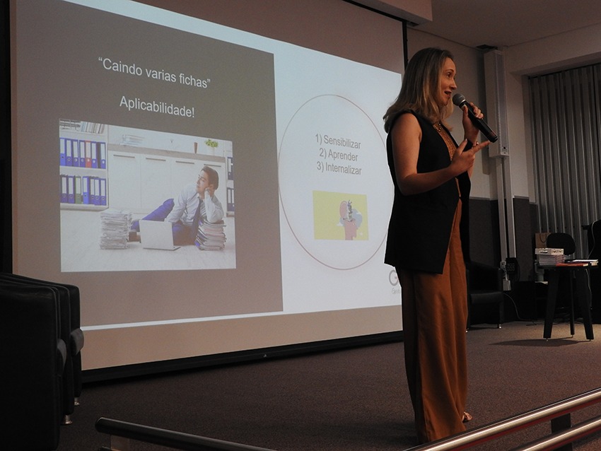 Graciela falou sobre o impacto da gestão do tempo na vida e nos negócios, trazendo questionamentos importantes para reflexão, como quanto tempo se precisa para promover as mudanças que se deseja, quais os desafios da gestão do tempo na administração da vida, além de pontos como a transformação da correria do dia em produtividade, ter o tempo como aliado e não como inimigo, dentre outras questões.