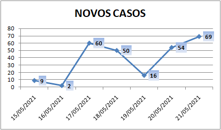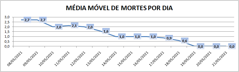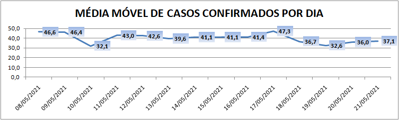 A média móvel de novos casos na região é de 37,1 por dia. Na comparação com o dado de sete dias atrás, a média móvel apresenta queda de 10%. Já com relação ao índice de 14 dias atrás, o valor é de 20% de queda no registro médio diário de casos.