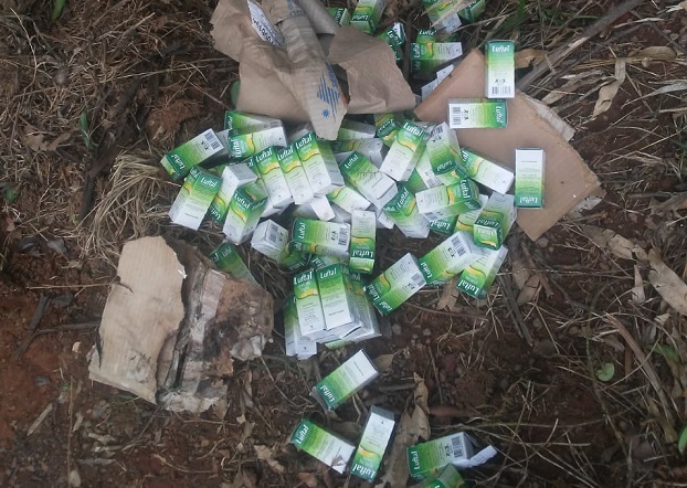 Na tarde desta quinta-feira (18), moradores de Fazenda Fialho, no interior de Taquara, encontraram diversos frascos de remédio jogados em uma valeta, às margens da Estrada Mato Fino, estrada secundária que fica próxima a estrada Boa Vista, que dá acesso a localidade de Figueirão.