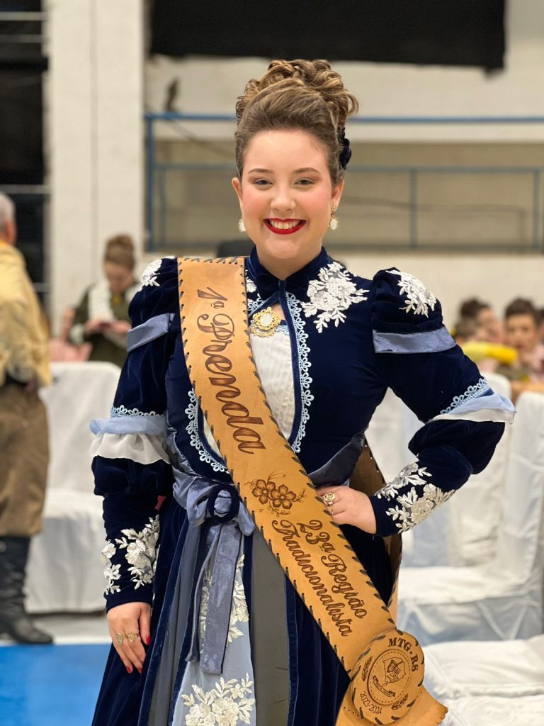 Já a 2ª Prenda, da 22ª RT, Julia Calvi da Silva destaca que é uma honra representar a região pela 4ª oportunidade, agora, na categoria adulta. “O último ano foi cheio de desafios e repleto de momentos únicos e especiais, e agora, chegada a ‘reta final’, saio de Porto Alegre com o sentimento de dever cumprido, carregando em meu coração a certeza que dei o meu melhor e me doei ao máximo para viver esse tão lindo sonho”, comenta.
