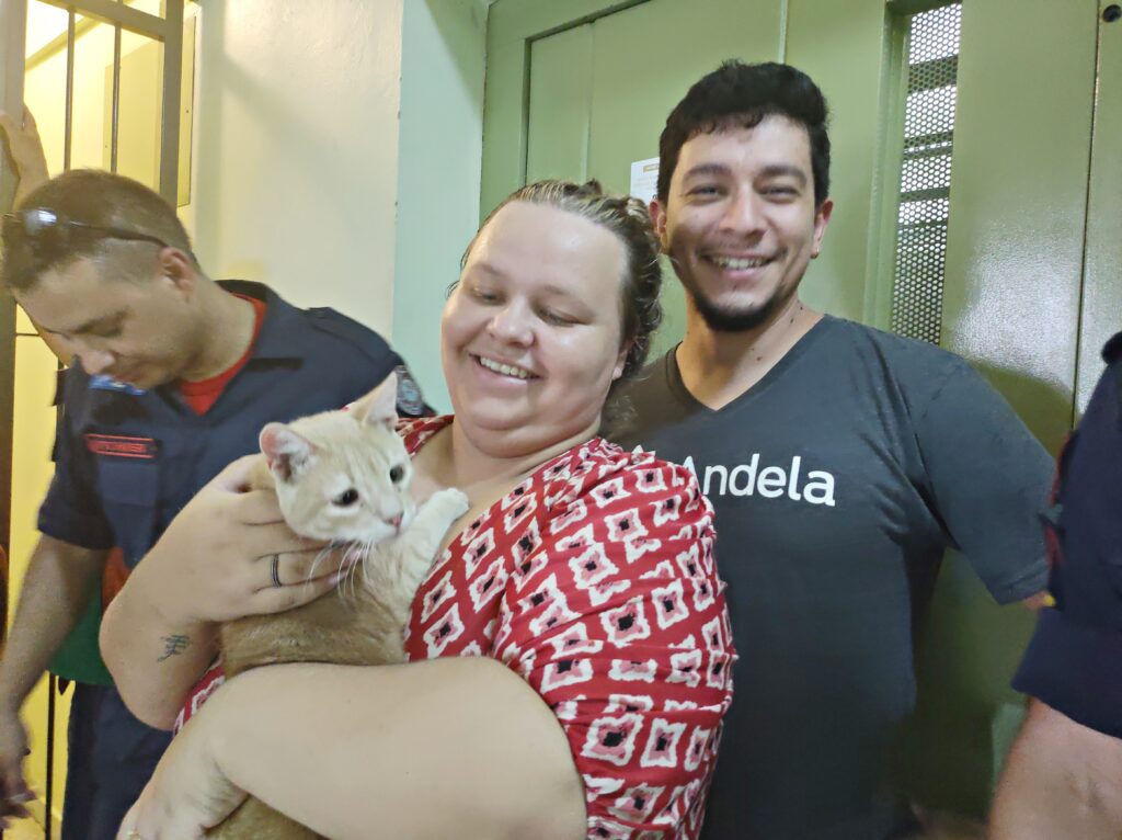 Por volta das 11h desta terça-feira, após uma vizinha do prédio ouvir o gato miando dentro da chaminé que dá acesso as churrasqueiras dos apartamentos, o casal acionou a Defesa Civil e o Corpo de Bombeiros Militar de Taquara.