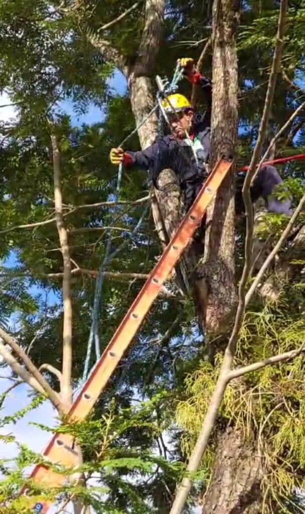 Conforme o coordenador da Defesa Civil de Taquara, Alessandro Santos, em razão da altura em que o animal se encontrava foi necessário solicitar ajuda do Corpo de Bombeiros Militar, que utilizou uma escada e cordas para subir na árvore.