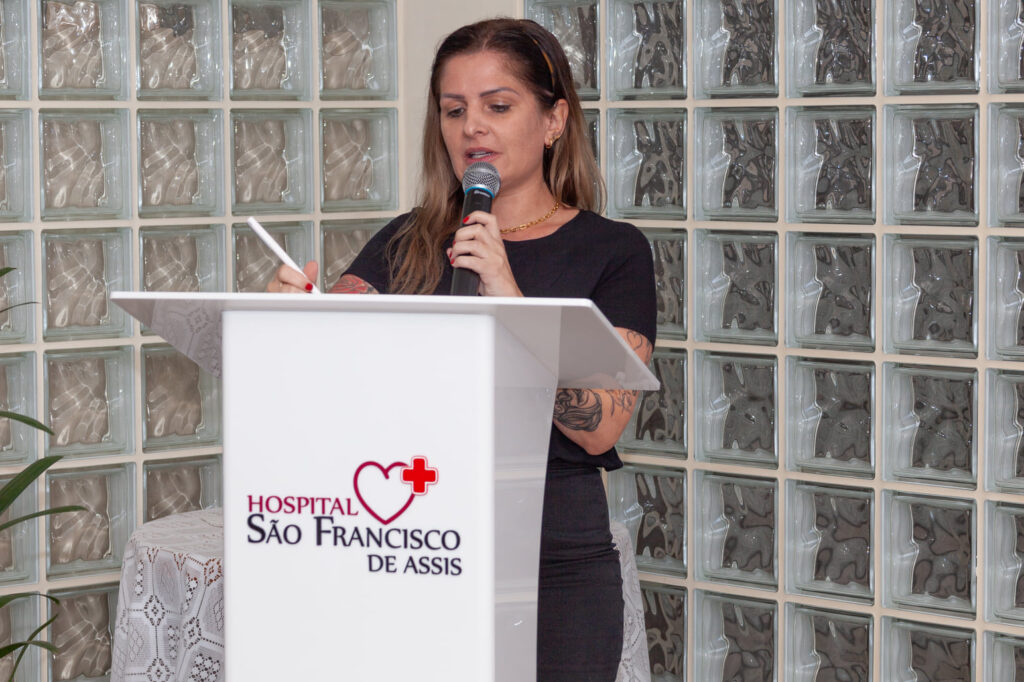 Em seu discurso, a gerente do residencial, Giseli Bartmann, fez questão de apresentar a equipe do local e destacou o empenho de todos para oferecer aos moradores e hóspedes um ambiente bonito, seguro, confortável e cheio de carinho.