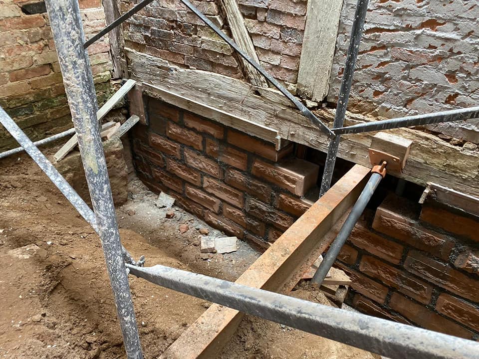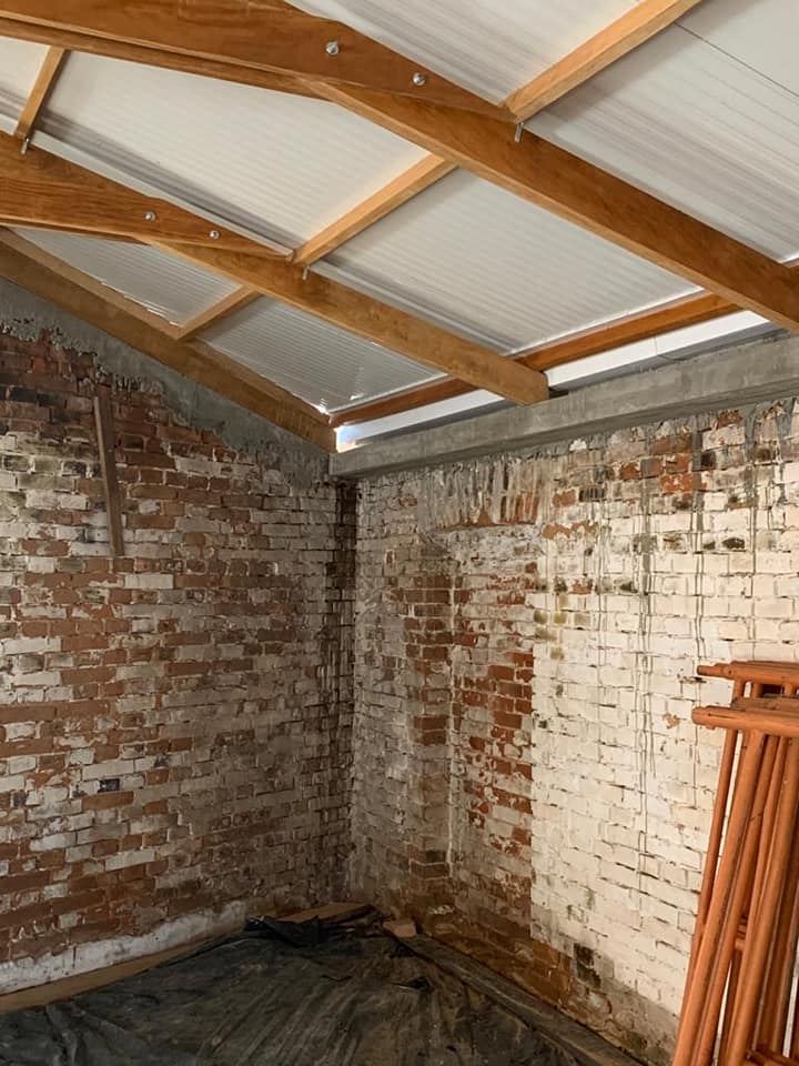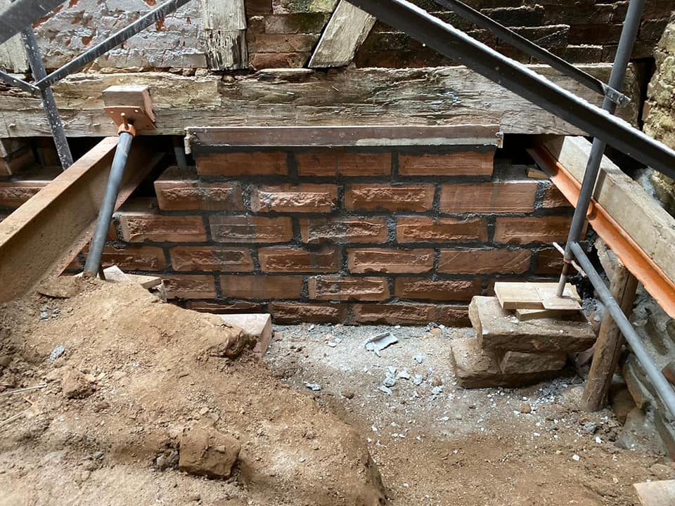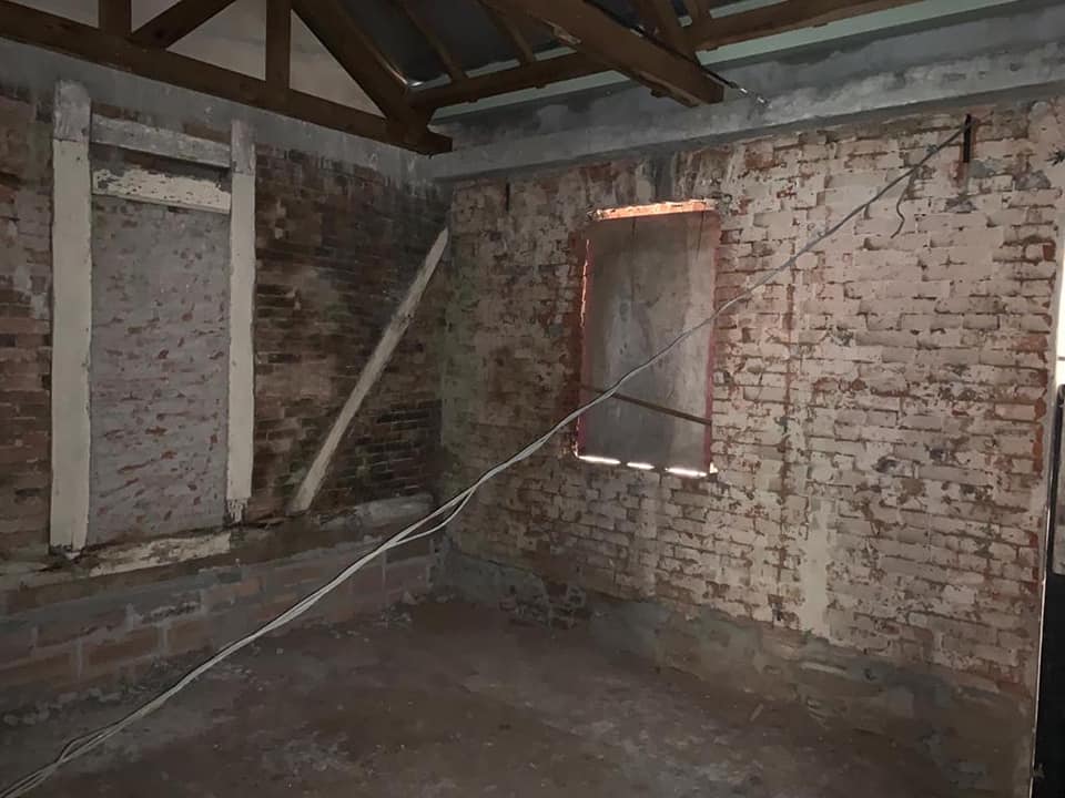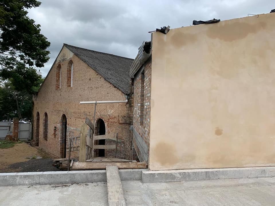 Na parte dos fundos, onde foram escavadas as fundações e ajustado o nível, foi feita uma nova fundação, com alvenarias, vigas e laje de cobertura e também houve a colocação das novas calhas, algerozes e cabeamentos e a reconstituição dos vãos das portas e janelas da parte dos fundos e na fachada da rua Edmundo Saft.
