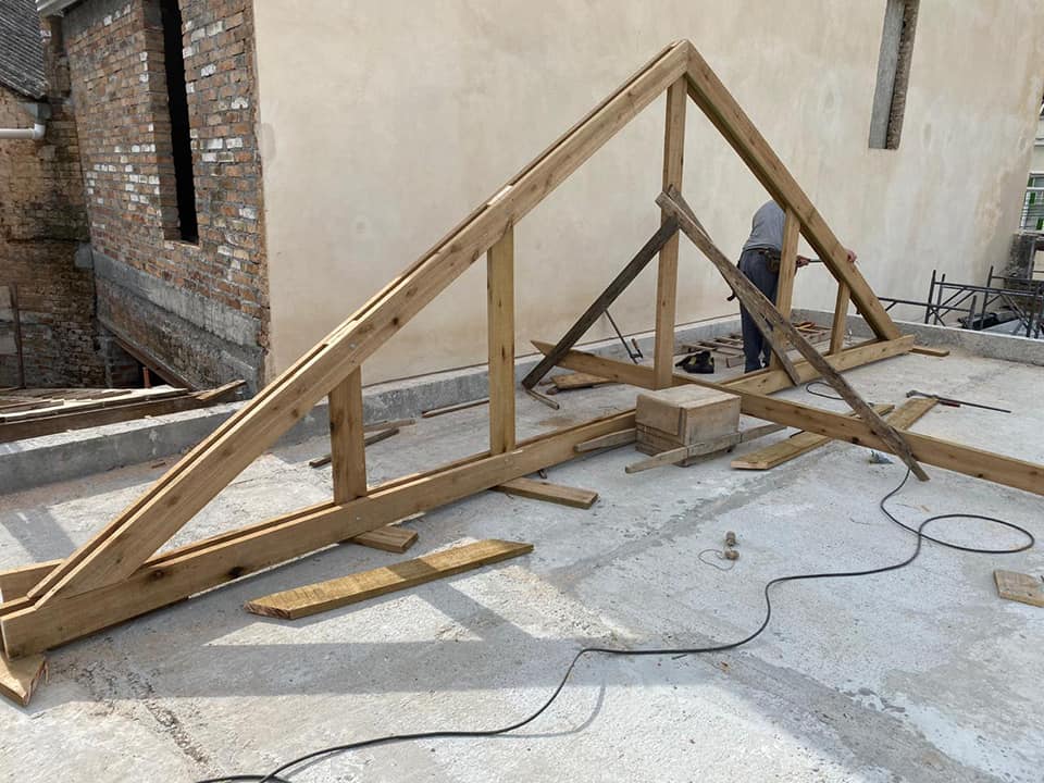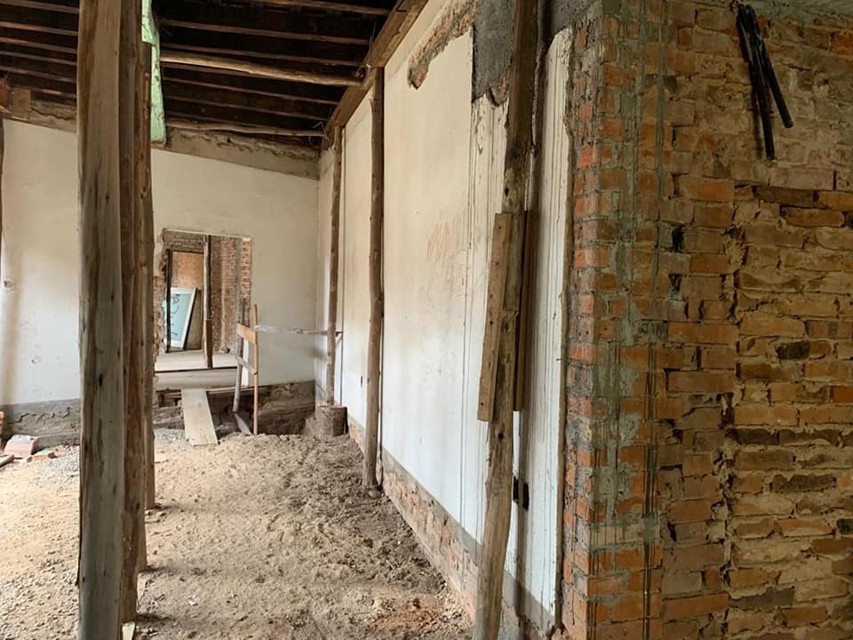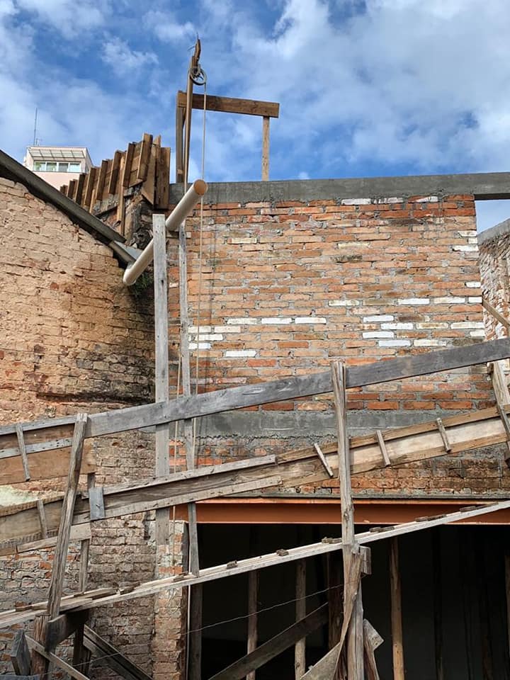 A primeira parte da obra da Casa Vidal incluiu ainda a retirada do reboco e execução de reboco novo, com cal e areia, e execução de reforços estruturais com atirantamento da parede principal que estava ruindo, além de reforço das fundações, nova estrutura da cobertura, e a cobertura com sub telhado e telhas cerâmicas tipo francesa.