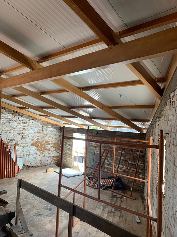 “Também foi feita a nova cobertura, no último momento construtivo da edificação (parte intermediária), com a colocação de sub telhado e telha metálica do tipo Sanduiche, que tem isolamento térmico”, explica a gestora cultural da Patrimonium.